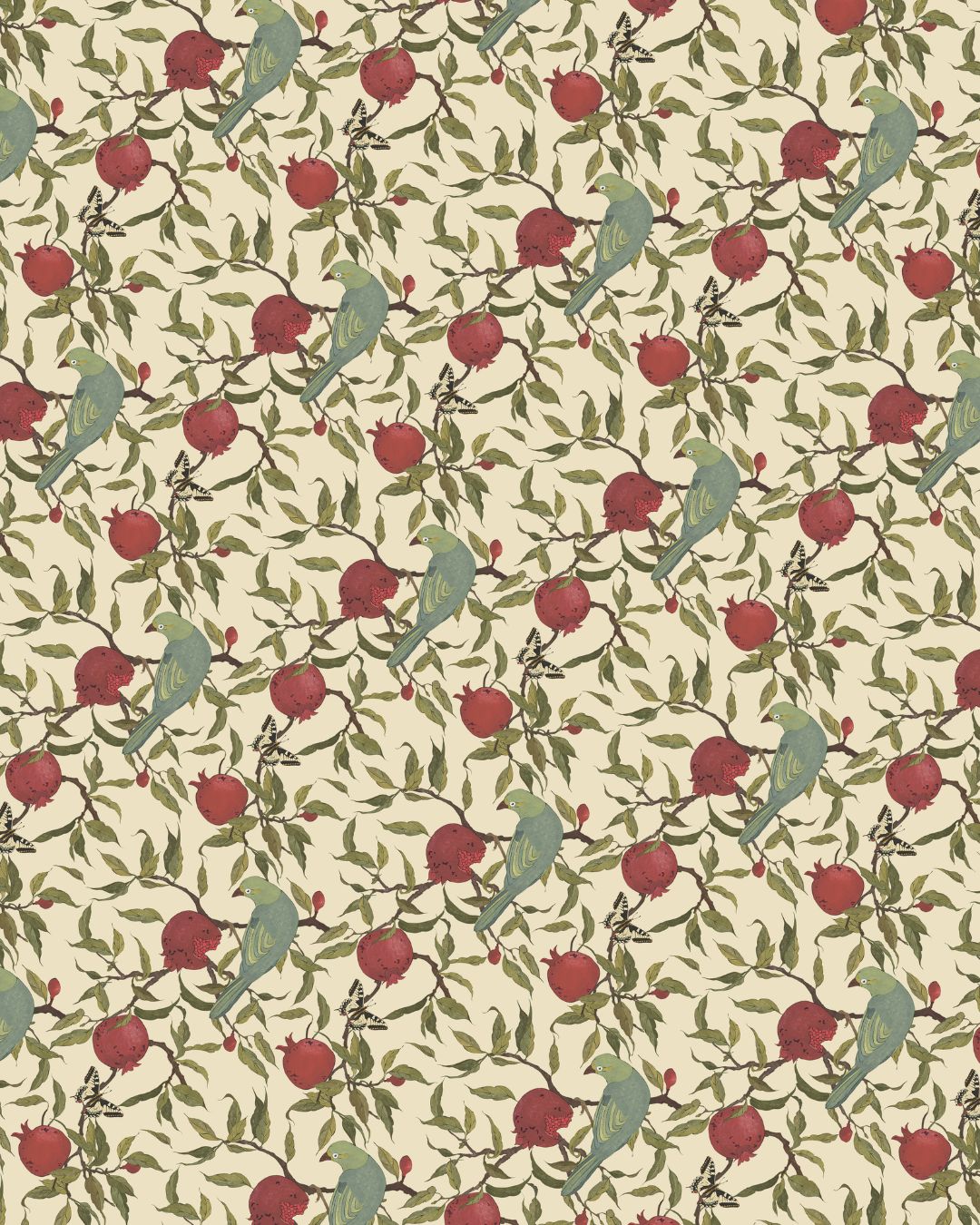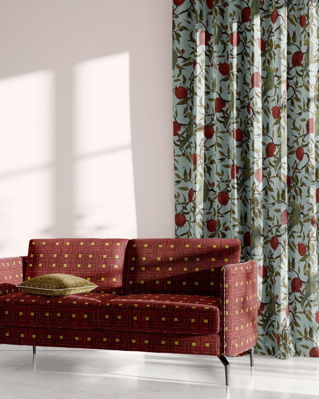 Ces rideaux imprimés du motif Oiseaux du Grenadier apportent à vos fenêtres la fraîcheur d’un verger en pleine maturité. Oiseaux et grenades se mêlent dans un décor végétal finement dessiné, entre ombre et lumière. Imprimés sur un velours doux et épais, ils offrent un tombé fluide et une atmosphère feutrée, idéale pour créer un espace chaleureux et inspiré.