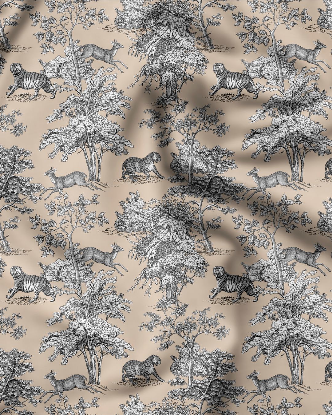 Imprimé sur un velours doux et épais, notre tissu d’ameublement Singes et Palmiers allie confort, fantaisie et qualité. Ce motif joyeux met en scène des singes espiègles perchés dans des palmiers gracieux, pour une ambiance tropicale et légère. Idéal pour recouvrir fauteuils, banquettes ou têtes de lit, ce tissu apporte une touche d’exotisme graphique à vos projets. Une matière expressive et raffinée, parfaite pour une décoration pleine de caractère.