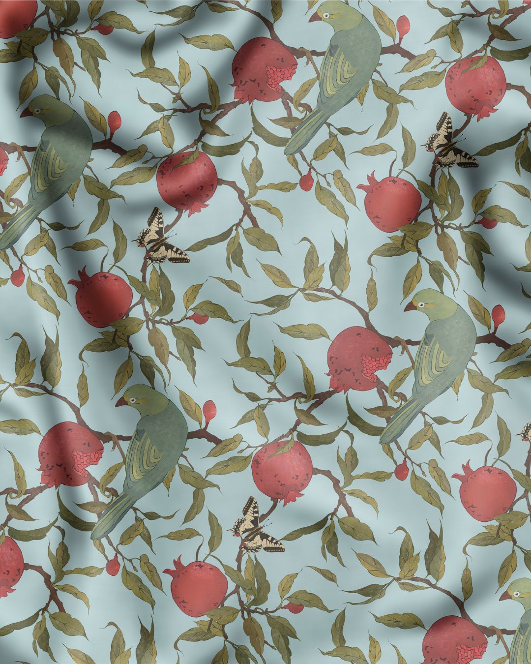 Imprimé sur un velours doux et épais, notre tissu d’ameublement Oiseaux du Grenadier capture la beauté d’un grenadier en pleine fructification, habité d’oiseaux délicats. Riche, élégant et poétique, ce motif donne vie à vos projets textiles : fauteuils, banquettes, têtes de lit ou panneaux décoratifs. Une matière noble pour une décoration qui célèbre la nature avec finesse.